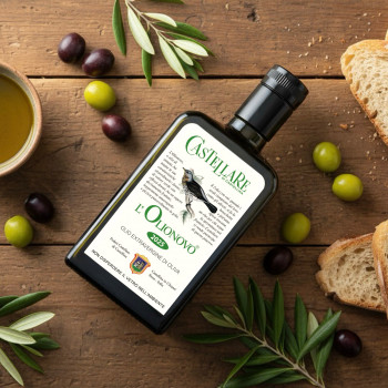 A differenza del vino che con il tempo in genere migliora, l’olio d’oliva extravergine dà il meglio di sé appena franto. Per questo, per sottolineare questa caratteristica, Castellare ha brevettato il nome L’Olionovo, l’espressione autentica con cui i contadini definiscono l’olio appena esce dal frantoio. Verde intenso, piccante quanto basta a renderlo vivo e gradevole al palato.