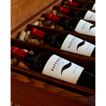 La consolle Baffonero è un elegante confezione in legno massello pensata per accogliere 6 bottiglie Magnum da 1,5 L dell'annata corrente. Gli scomparti singoli valorizzano ogni bottiglia, mentre il coperchio inciso con il marchio aggiunge un tocco di raffinatezza. Il design pulito e l’apertura a ribalta la rendono ideale come elemento d’arredo adatto a diversi ambienti. Un oggetto ideale per valorizzare il vino icona di Rocca di Frassinello con stile e prestigio.